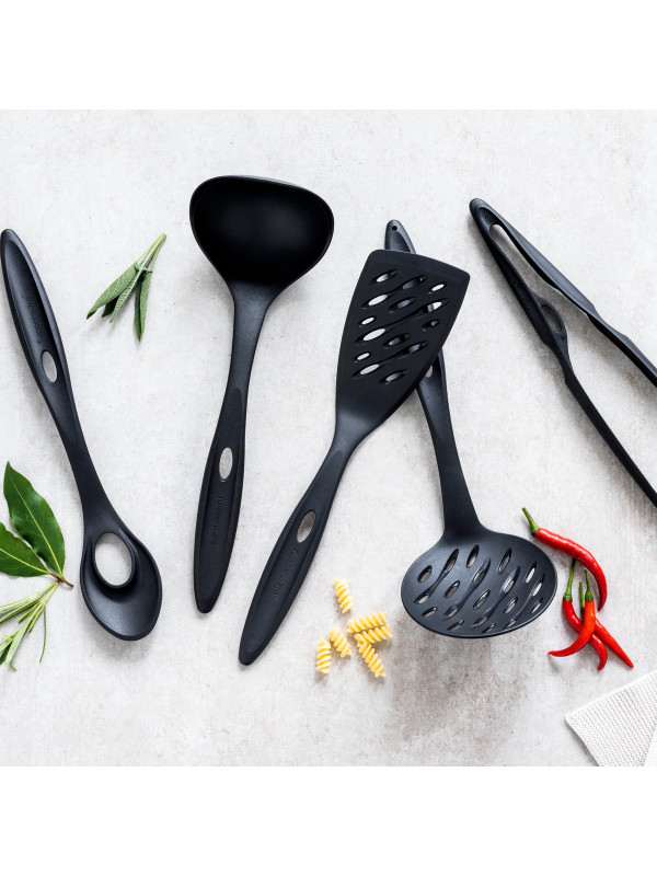 Popis produktu: Ergo náradie kladie veľký dôraz na ergonómiu. každý nástroj je dokonale tvarovaný, aby sa s ním ľahko cedilo, miešalo, nazbieralo alebo servírovalo. Materiál, z ktorého sú nástroje vyrobené, zaistí ich trvanlivosť, pretože je pevný a tepelne odolný.