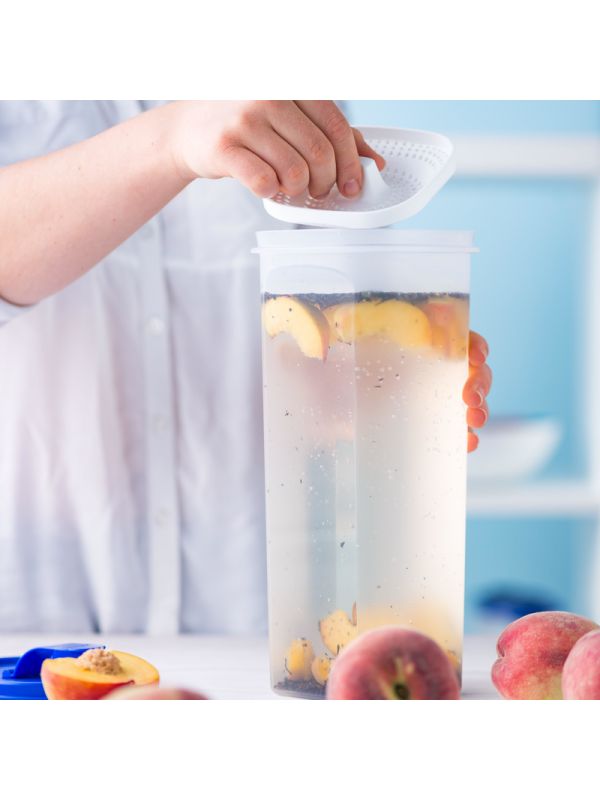 Veľká 2,0 l nádoba na nápoje, ktorá sa zmestí takmer do všetkých dverí chladničky. Hranatý základný tvar zaisťuje maximálne využitie priestoru, priehľadná nádoba umožňuje okamžite vidieť obsah. Veľké veko umožňuje ľahké plnenie a vďaka vylievaciemu otvoru je nalievanie pohodlné a nerozlieva sa.